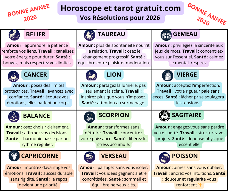 Bélier : Amour : apprendre la patience renforce vos liens. Travail : canalisez votre énergie pour durer. Santé : bougez, mais respectez vos limites.